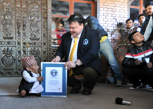 நேபாள் நாட்டைச் சேர்ந்த ‘சந்த்ரா பகதூர் டங்கி’ (Chandra Bahadur Dangi) என்பவர் உலகில் வாழும் உயரம் குறைந்த மனிதருக்கான கிண்ணஸ் உலக சாதனை விருதைப் பெற்றார். இவரது தற்போதைய உயரம் 54. cm (21.5 in). ஆகும். 72 வயதையடைய சந்த்ரா பகதூர் 14.5 kg நிறையுடையவர் என்பதும் கிண்ணஸ் புள்ளி விபரங்கள் தெரிவிக்கின்றன.