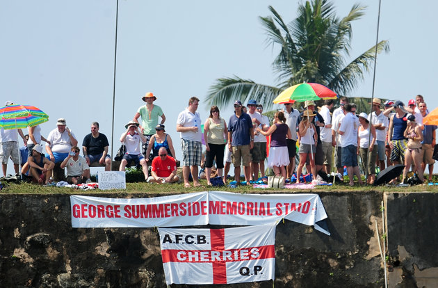 மூன்றாவது நாளாக தொடரும் இப்போட்டிக்கு இலங்கை இரசிகர்களை விட இங்கிலாந்து இரசிகர்களின் வருகையும் அவர்களது அதரவுகளும் காலி மைதானத்தை சிறப்பித்துக் கொண்டிருக்கின்றன. இங்கிலாந்தின் உள்ளுர் கழகங்களினதும் நகரங்களினதும் பெயர்களைத் தாங்கிய இங்கிலாந்து கொடிகள் காலிக் கோட்டைச் சுவரை ஆக்கிரமித்திருக்கின்றன.