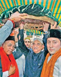 அங்கு சர்தாரி 42 சதுர மீட்டர் சிவப்பு நிற புனித துணியும், மலர் போர்வையும் வழங்கி பிரார்த்தனை செய்தார். அவரது மகன் பச்சை நிற புனித துணியை வழங்கினார். பிரதமர் மன்மோகன் சிங் சார்பில் மந்திரி பவன்குமார் பன்சால் புனித துணி வழங்கினார்.