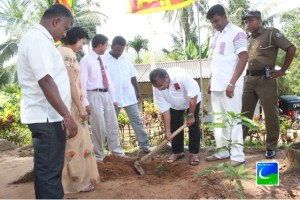 பொருளாதார அபிவிருத்தி அமைச்சினால் நடைமுறைப் படுத்தப்பட்டு வரும் ‘திவி நெகும’ வீட்டுப் பயிர்ச் செய்கை செயற்றிட்டத்தின் மூன்றாவது கட்டத்தை வைபவ ரீதியாக ஆரம்பித்து வைக்கும் நிகழ்வு நேற்று (10) எல்பிட்டிய பிரதேச செயலகப் பிரிவிற்குட்பட்ட வல்அம்பகல பிரதேசத்தில் இடம் பெற்றது. இந்நிகழ்வில் பிரதம அதிதியாக கலந்து கொண்ட மீள்குடியேற்ற அமைச்சர் எம்.எச்.குணரத்ன வீரகோன் மரக்கன்று ஒன்றை நட்டு வேலைத் திட்டத்தை ஆரம்பித்து வைப்பதை படத்தில் காணலாம்.