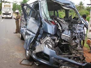 அதிகாலை 4.00 மணியளவில் நடந்த இவ்விபத்து தொடர்பாக பொலிஸார் தெரிவிக்கையில் வானின் சாரதியின் தூக்க கலக்கம் காரணமாகவே இவ்விபத்து நடைபெற்றிருக்கலாம் என தெரிவித்தனர்.