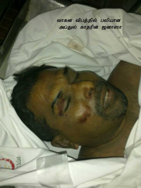 மேற்படி நபர் கடந்த 13 வருடங்களாக சவூதி அரேபியாவின் றியாத் நகரிலுள்ள நிறுவனமொன்றில் தொழில் புரிந்து வந்துள்ளார். இந் நிலையில், விடுமுறையில் நாடு திரும்புவதற்கான ஏற்பாடுகளைச் செய்து கொண்டு வாடகை காரொன்றில் பயணித்து கொண்டிருந்த போதே இவர் பயணித்த வாகனம் விபத்துக்குள்ளாகியுள்ளது.