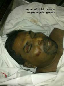 உயிரிழந்த அப்துல் காதரின் ஜனாஸா இன்றைய தினம் சவூதி அரேபியாவின் றியாத் நகரில் நல்லடக்கம் செய்யப்படவுள்ளதாக அறிய முடிகிறது.
