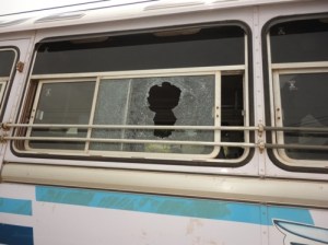 மட்டக்களப்பு ஊறணியில், கடும் பொலிஸ் பாதுகாப்புகளுக்கு மத்தியில் நடைபெறும் இலங்கைத் தமிழரசுக் கட்சியின் மாநாட்டுக்கு யாழ்ப்பாணத்தில் இருந்து வருகைதந்த பஸ் வண்டி மீது இன்று பகல் தாக்குதல் மேற்கொள்ளப்பட்டுள்ளது.மோட்டார் சைக்கிள் ஒன்றில் வந்த சிலரே இத்தாக்குதலை மேற்கொண்டதாகத் தெரியவருகிறதது.