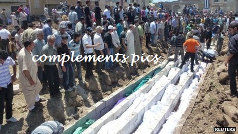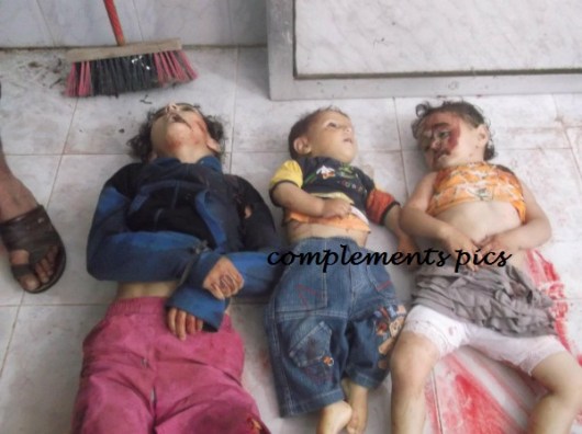 கடந்த வெள்ளிக்கிழமை சிரியா படையின் மிலேச்சத்தனமான ஆட்டிலரி – செல் தாக்குதலில் அப்பாவிப் பொதுமக்கள் 108 பேர் கொல்லப்பட்டனர். இவர்களுள் 49 சிறுவர்களும் 34 பெண்களும் உள்ளடங்குவர். இத்தாக்குதலை உலக நாடுகள் வண்மையாகக் கண்டித்திருக்கின்றன. இத்தாக்குதல் சம்பவத்தின் உலக மக்களின் கண்களை குளமாக்கிச் சென்ற சில காட்சிகள் இங்கு பதிவேற்றப்படுகிறது. தயவு செய்து பலவீனமானவர்கள் இப்படங்களைப் பார்ப்பதைத் தவிர்த்துக் கொள்ளவும்.நன்றி