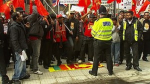 பிரித்தானிய தமிழர் பேரவையின் தலைவர் போதகர் இம்மானுவேல், சுரேன் சுரேந்திரன், மயன் கந்தையா ஆகிய விடுதலைப் புலிகளின் ஆதரவாளர்களே இந்தப் போராட்டத்தை முன்நின்று ஒழுங்கு செய்துள்ளனர் எனப் புலனாய்வுப் பிரிவினர் கண்டறிந்துள்ளதாக அப்பத்திரிகையில் குறிப்பிடப்பட்டுள்ளது.