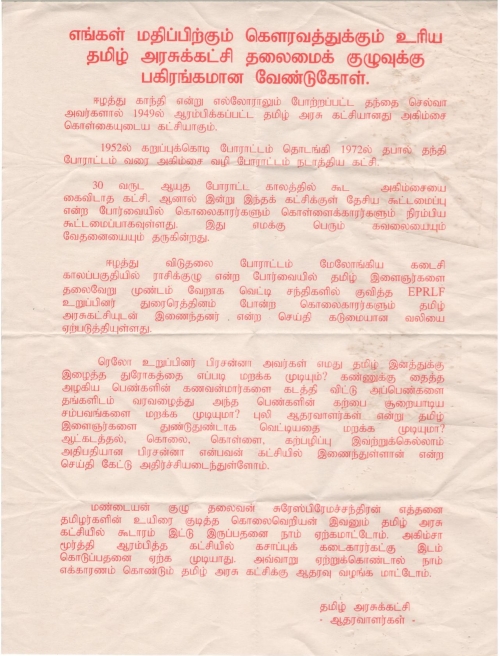 மக்களுக்குக் குழப்பத்தை உண்டுபண்ணக் கூடிய வகையிலான தகவல்களை இச்சுவரொட்டிகள் கொண்டிருப்பதனால் அவை தமிழ்த் தேசிய கூட்டமைப்புக்கு எதிரானவர்களால் நுட்பமாக முன்னெடுக்கப்படும் பிரசாரமாக இவை இருக்கலாம் என தமிழ் மக்கள் பேசிக் கொள்கின்றனர்.