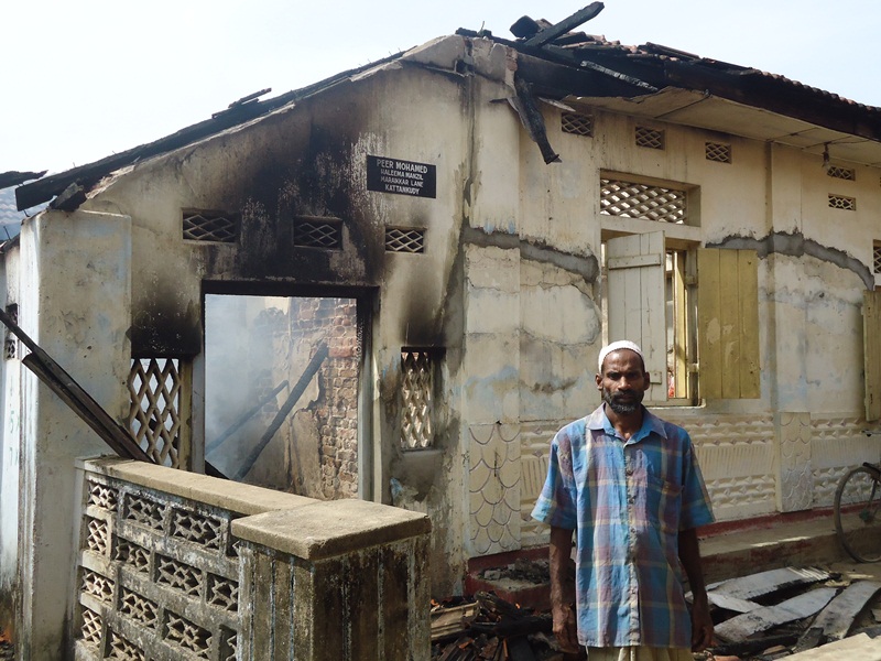 மட்டக்களப்பு காத்தான்குடியில் இன்று காலை வீடொன்று தீப்பற்றி எரிந்துள்ளது. இன்று காலை 6.30 மணியளவில் காத்தான்குடி-04 மரைக்கார் வீதியிலுள்ள வீடொன்று தீப்பற்றி எரிந்ததில் வீட்டின் உட்பகுதி முற்றாக எரிந்துள்ளதுடன் வீட்டிலிருந்த பொருட்களும் முற்றாக எரிந்து போயுள்ளன.