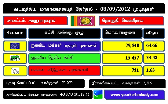 வடமத்தியமாகாணசபை: கெக்கிராவ தொகுதி முடிவுகள்