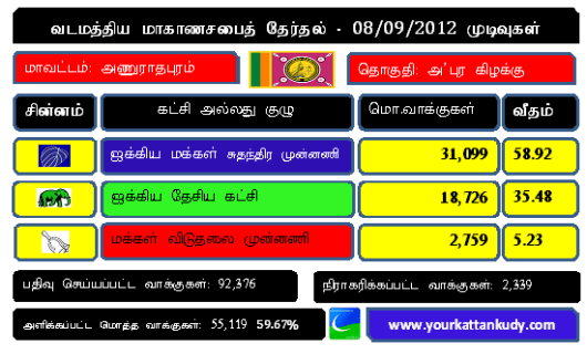 வடமத்திய மாகாணசபைத் தேர்தல் 2012- முடிவுகள்