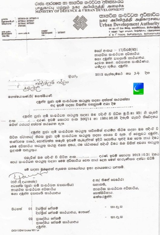 இங்கிருந்து வெளியேறுபவர்களுக்கு கண்டலாம வீதியில் மாற்று இடம் வழங்க இரண்டு வாரங்களில் ஏற்பாடு செய்யப்படும் என்றும் நகர அபிவிருத்தி அமைச்சகத்தின் நோட்டீஸ் கூறுகிறது.
