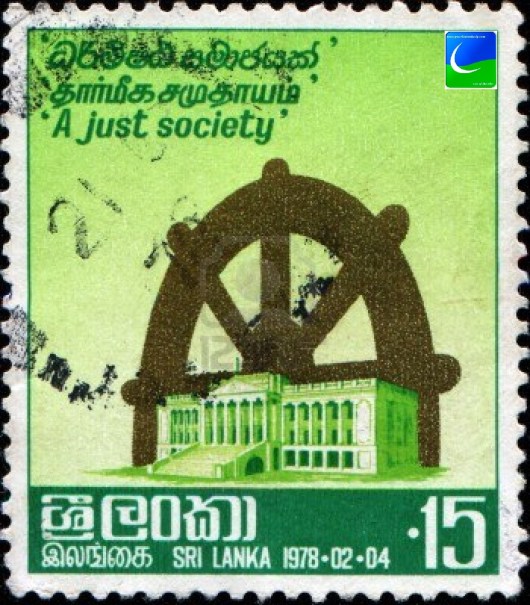 இலங்கையில் 1978ம் ஆண்டு வெளியிடப்பட்ட இம்முத்திரை, 1980 களில் இருந்து பிரபல்யமடைந்து வந்தது. நெஞ்சைவிட்டு அகழாத இம்முத்திரை, வெளிநாட்டு முத்திரைகள் பல வடிவங்களில் வந்தபோதிலும் ‘தார்மீக் சமுதாயம்’ எனும் தலைப்பிடப்பட்டு அப்போதைய இலங்கை பாராளுமன்றத்தின் படத்தையும் தார்மீக சக்கரத்தையும் கொண்டமைந்த இம்முத்திரையானது, 1990 இற்கு முன்னர்வரை புழக்கத்தில் இருந்து வந்தது. அப்போதைய பெறுமதி 15 சதத்தைக் கொண்டிருந்த இம்முத்திரை சுமார் 50 சதத்தின் பெறுமதி வரைக்கும் புழக்கத்தில் இருந்ததாகவும் தெரிவிக்கப்படுகிறது.