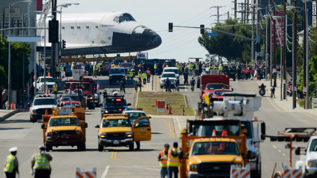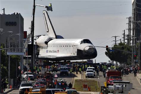 நேற்று முன்தினம் அமெரிக்காவின் லொஸ் ஏன்ஜல் நகரில் இரு மணிநேரம் காட்சிக்காக வைக்கப்பட்டு, 12 மணித்தியாலங்கள் ஊர்வலமாகவும் கொண்டு செல்லப்பட்டது. இராட்சத இழுவண்டியில் கட்சிதமாக பொருத்தப்பட்டு ஊர்வலம் வந்தது.