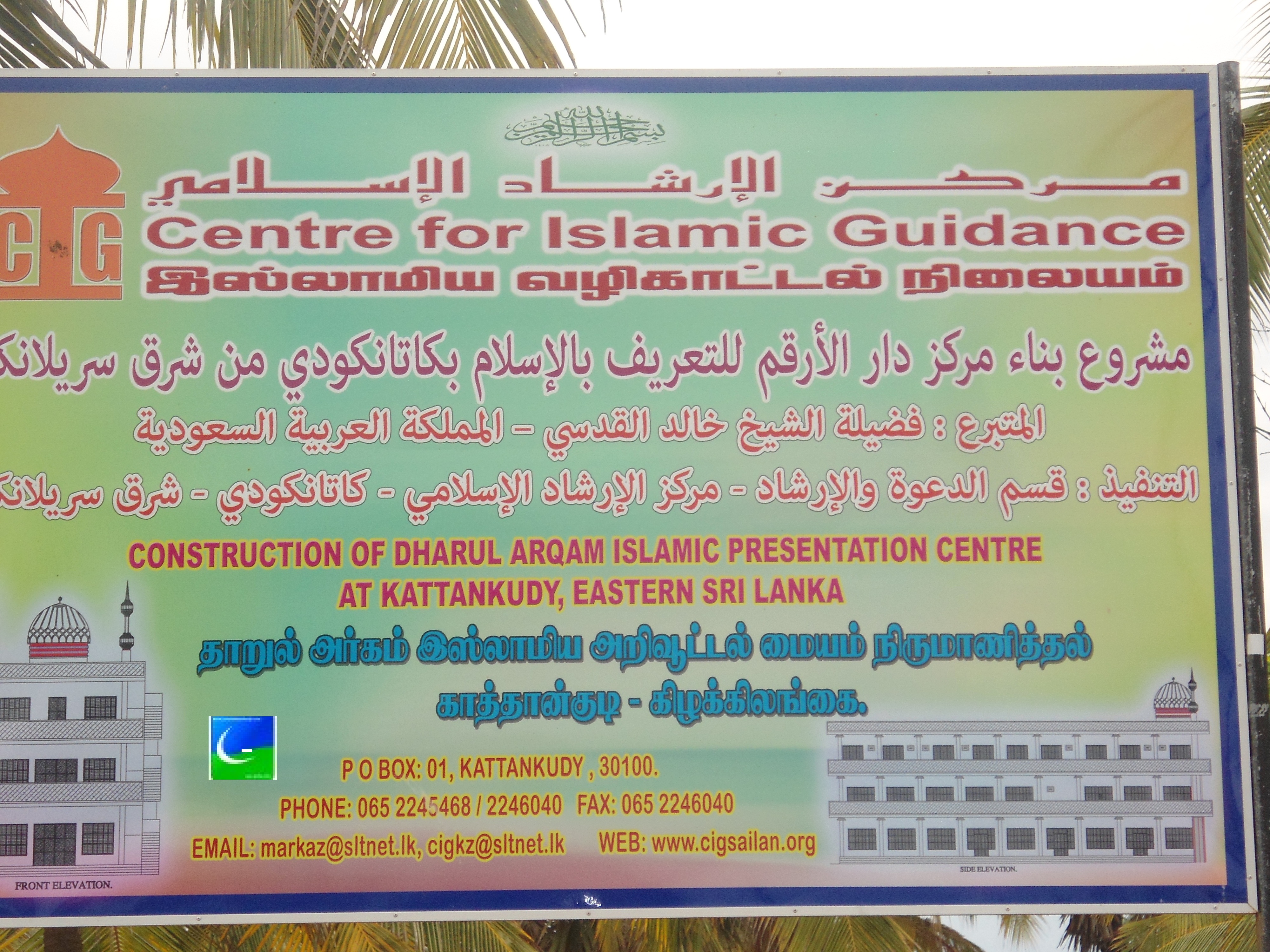 அல்லாஹ்வின் உதவியோடு காத்தான்குடி பள்ளிவாயல்கள் முஸ்லிம் நிறுவனங்களின் சம்மேளனம்-காத்தான்குடி இஸ்லாமிய வழி காட்டல் நிலையம் உள்நாட்டு, வெளிநாட்டு அமைப்புகளின் நிதி உதவியுடன் காத்தான்குடி கடற்கரையில் அமைந்துள்ள ஆ-ம -ஹாஜியார் காணியின் ஒரு துண்டினை பல இலட்சம் ரூபா கொடுத்து கொள்முதல் செய்யப் பட்டு தாருல் அர்கம் இஸ்லாமிய அறிவு ஊட்டல் மையம் ஒன்று பல இலட்சம் ரூபா செலவில்கட்டப் பட்டு வருகின்றது. அல்ஹம்துலில்லாஹ்
