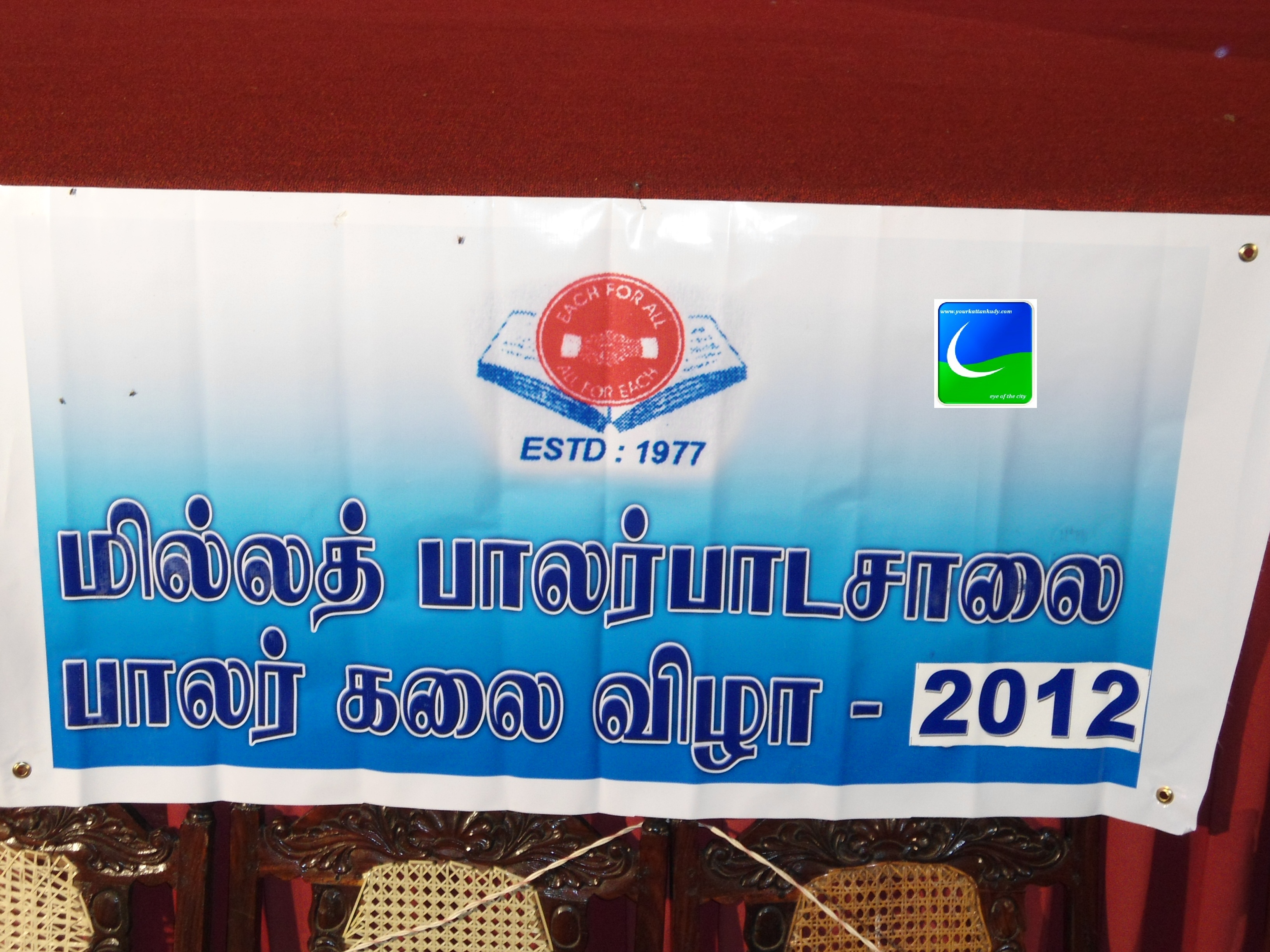 காத்தான்குடி மில்லத் சனசமூக நிலைய மில்லத் பாலர் பாடசாலையின் 24 வது பாலர் கலை விழா 16.11.2012 வெள்ளிக்கிழமை பி.ப. 02.30 மணிக்கு காத்தான்குடி ஹிஸ்புல்லாஹ் மண்டபத்தில் அல்.ஹாஜ் NM. JAMEEL. (RDA) தலைமையில் இடம் பெற்றது. பிரதம அதிதியாக அல்.ஹாஜ் SMM. SUBAIR BA (Dip In Edu) (காத்தான்குடி பிரதேச கல்விப் பணிப்பாளா்) அவர்கள் கலந்து கொண்டார்.