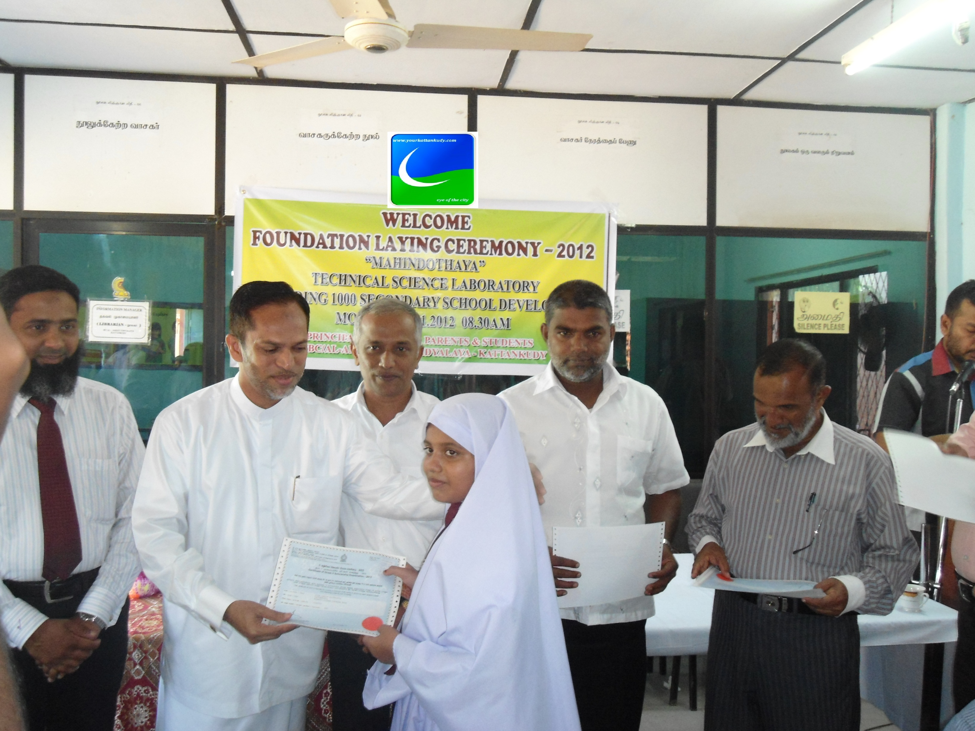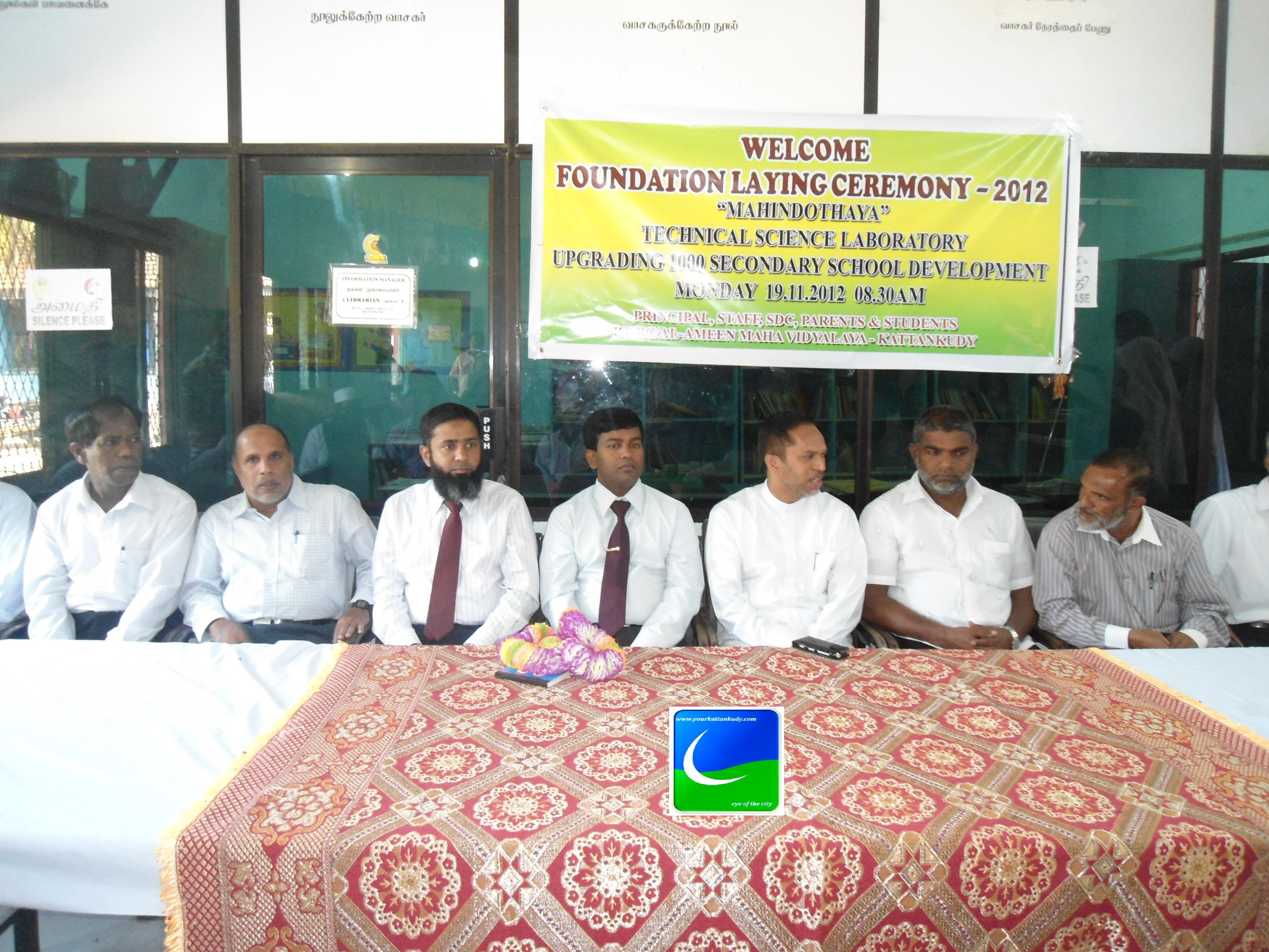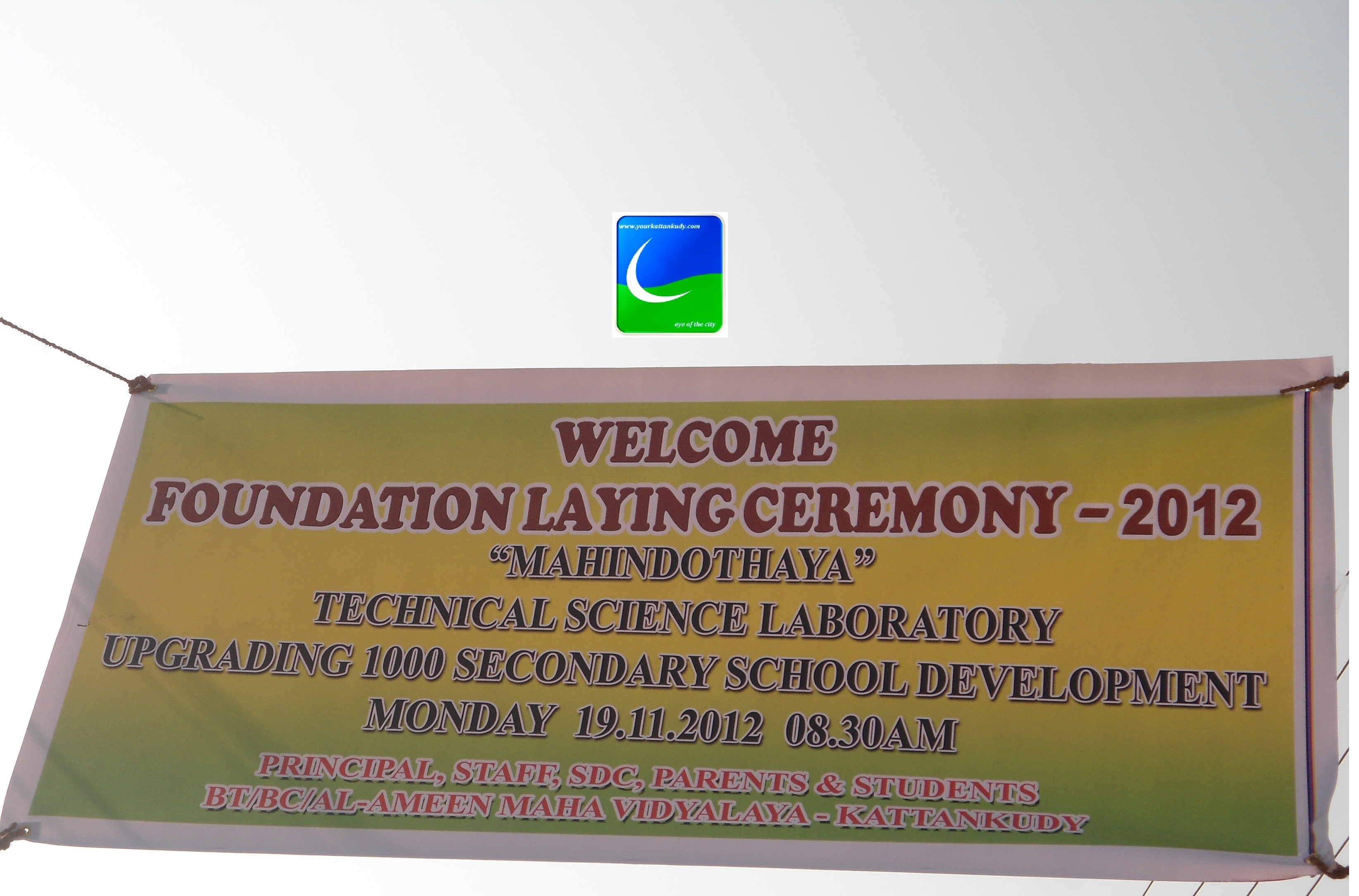 மஹிந்த சிந்தனையின் 1000 பாடசாலை அபிவிருத்தி திட்டத்தின் கீழ் மஹிந்தோதய கட்டிட தொகுதிக்கான அடிக்கல் நாட்டும் விழா இன்று (19.11.2012 திங்கட்கிழமை ) காலை 08.30 மணிக்கு காத்தான்குடி மட்-மம-அல்.அமீன் மகா வித்தியாலயத்தின் அதிபா் எம்.எம். கலாவுதீன் SLPS தலைமையில் இடம் பெற்றது.