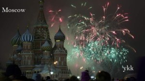 Fireworks explode in the sky over St. Basil Cathedral as Russians celebrate New Year on Red Square in Moscow, Russia, on Tuesday, Jan. 1, 2013. (AP Photo/Ivan Sekretarev)