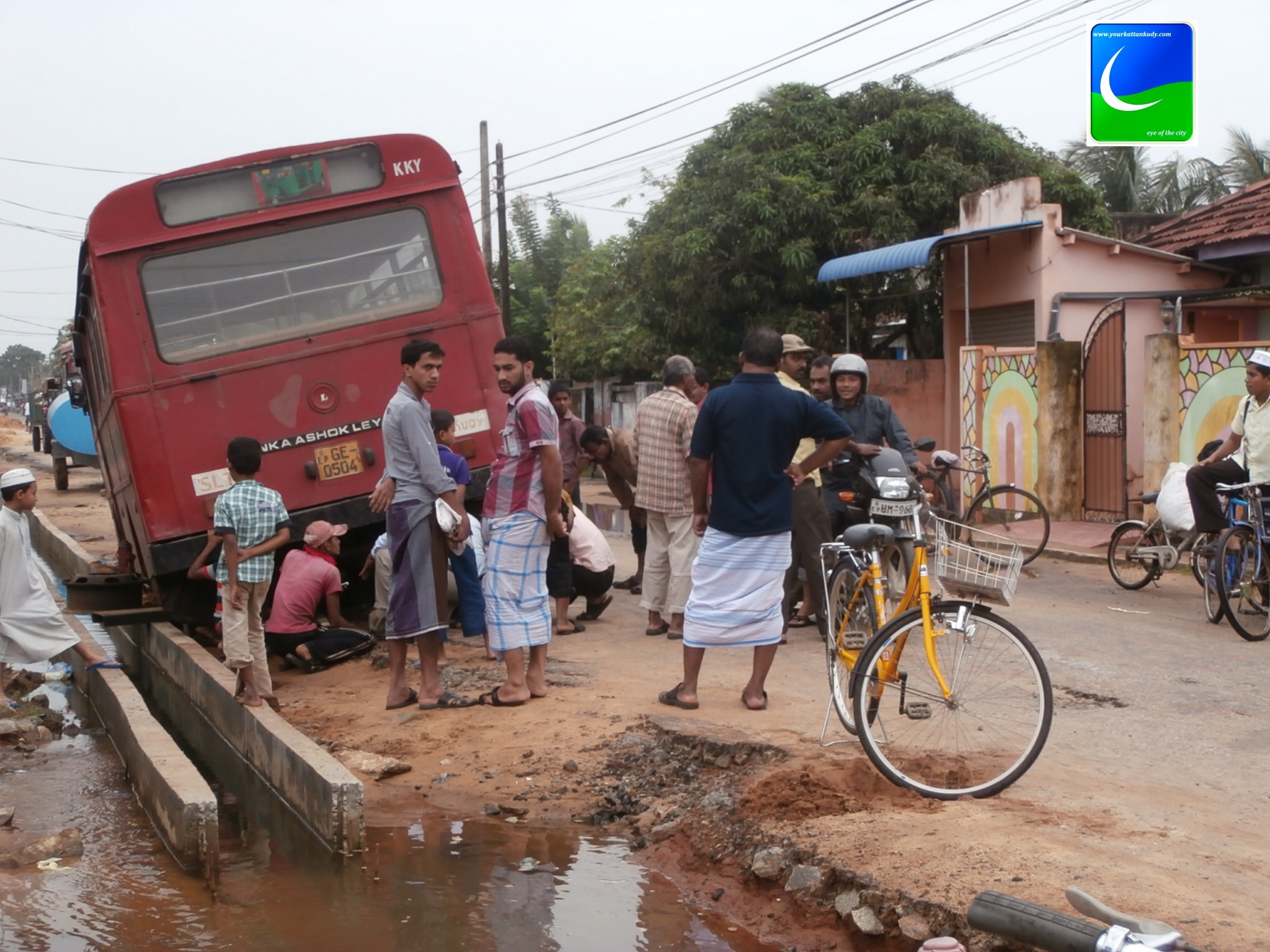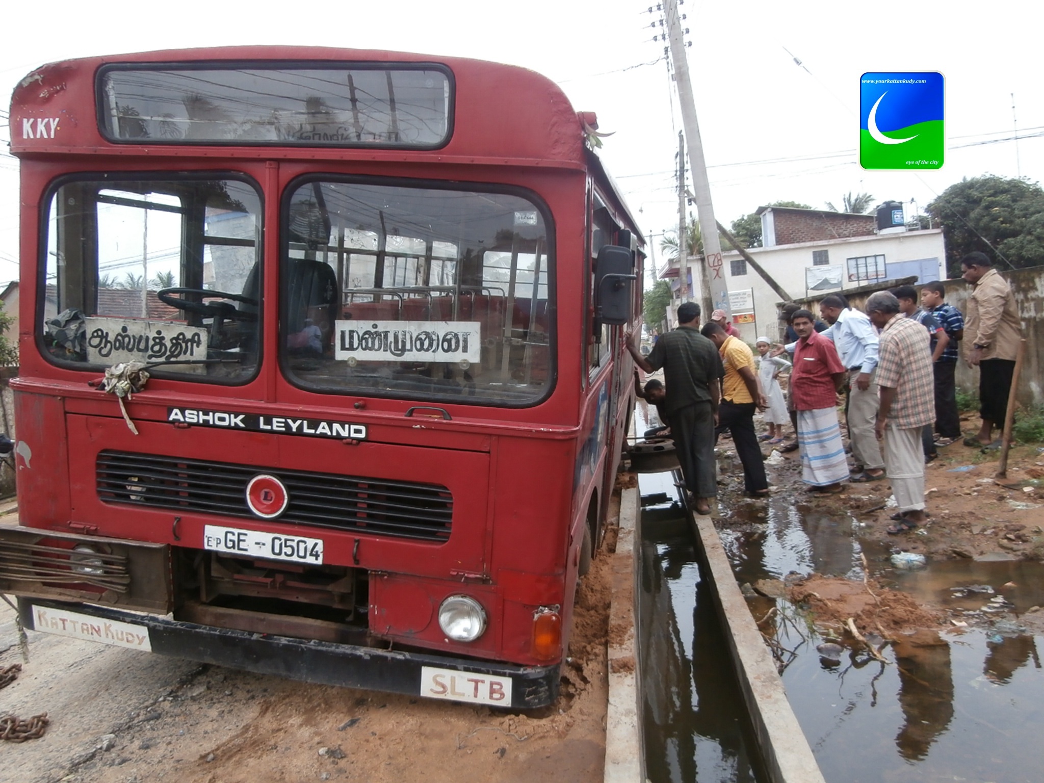காத்தான்குடி பஸ் டிப்போவிற்குச் சொந்தமான பஸ் ஒன்று 05.01.2013 சனிக்கிழமை அதி காலை வீதியை விட்டு விலகி குடை சாய்ந்துள்ளது. புதிய காத்தான்குடி மத்திய மஹா வித்தியாலயம் (தேசிய பாடசாலை) விடுதி முன்பாக மேற்படி பஸ் வந்து கொண்டிருக்கையில் எதிரே கனரக வாகனம் ஒன்று வருவதினை அவதானித்த சாரதி அந்த வாகனத்திற்கு (சைட்) இடம் கொடுப்பதற்காக முற்பட்ட வேளையினில் தான் மேற்படி சம்பவம் இடம் பெற்றதாக பொது மக்கள் தெரிவித்தனா்.