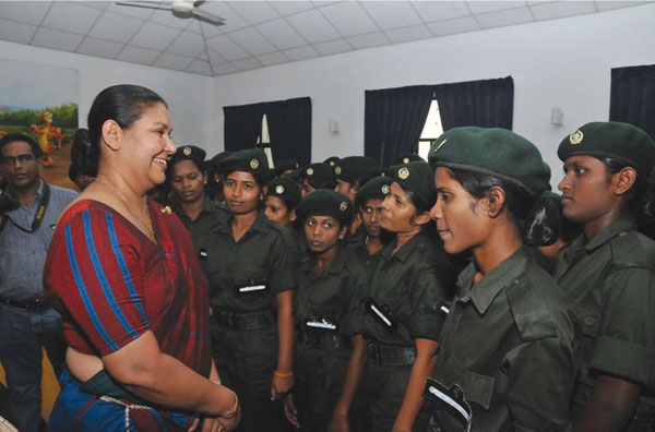 கொழும்பிலுள்ள இராணுவ மகளிர் படைப்பிரிவுக்கு சென்ற அவர்களை, இராணுவ தளபதியின் பாரியாரும் சேவா வனிதாவின் தலைவியு மான மஞ்சுளிகா ஜயசூரிய வரவேற்று உரையாடுகிறார்.