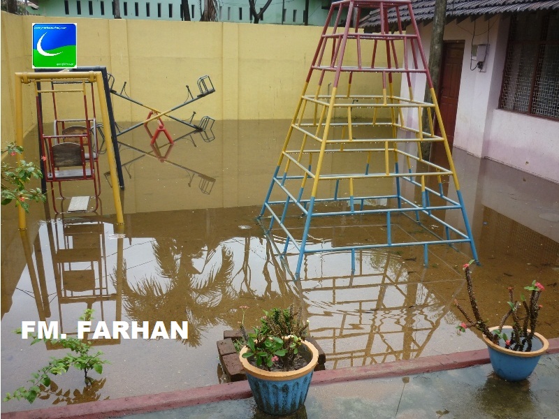 குறித்த பாடசாலை வீதியினை விடவும் தாழ்ந்து காணப்படுவதானால் நீர் இறைப்பு இயந்திரம் மூலம் வெள்ள நீர் வெளியேற்றப்பட்டது.