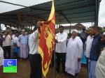 பிர்தௌஸ் நளீமி அவர்கள் தேசியக்கொடியினை ஏற்றிவைக்க பின்னணியில் இலங்கையின் தேசிய கீதம் ஒலிக்க நிகழ்வுகள் ஆரம்பமாகின.