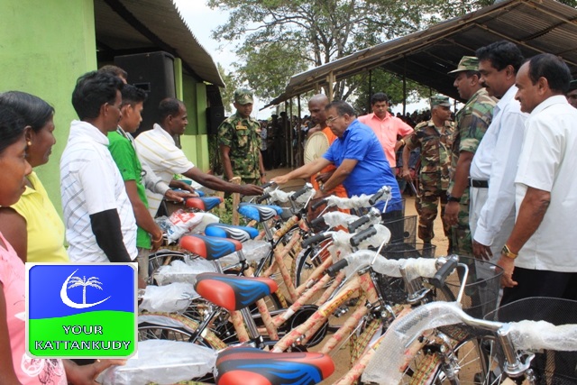 அத்துடன் வடமாகாண ஆளுநரின் நிதி, பொதுமக்களால் சேகரிக்கப்பட்ட நிதி என்பவற்றின் மூலம் கொள்வனவு செய்யப்பட்ட துவிச்சக்கர வண்டிகளும் அமைச்சர் குணரத்ன வீரகோனினால் பயனாளிகளுக்கு வழங்கிவைக்கப்பட்டது.