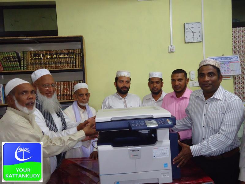 இதன் போது ஜம்மியதுல் உலமா சபைக்கு அன்பளிப்பு செய்யப்பட்ட போட்டோப் பிரதி இயந்திரம் பிரதம அதிதியாக் கலந்துகொண்ட கிழக்கு மாகாண சபையின் பிரதித்தவிசாளரும் மாகாண சபை உறுப்பினருமான எம். எஸ். எம். சுபைரினால் காத்தான்குடி ஜம்மியதுல் உலமா சபையின் தலைவர் மௌலவி எஸ். எம். அலியார் பலாஹியிடம் உத்தியோகபூர்வமாக கையளிக்கப்பட்டது.