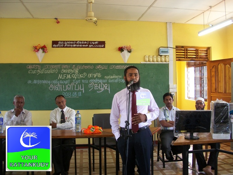 காத்தான்குடி மத்திய கல்லூரி தேசிய பாடசாலை உயர் தர பிரிவு காரியாலயத்திற்கு தனியான கணினி ஒன்றை கிழக்கு மாகாண சபை உறுப்பினர் சிப்லி பாறூக் தனது சொந்த நிதியில் கடந்த (18.3.2013) அன்று வழங்கி வைத்தார்.