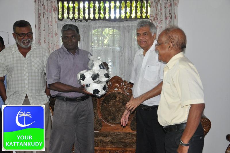 அதன் பின்னர் மட்டக்களப்பு மாவட்ட ஐக்கிய தேசியக் கட்சியின் முக்கியஸ்த்தர்களை எதிர்க்கட்சித்தலைவர் ஐக்கிய தேசியக் கட்சியின் முன்னால் கிழக்கு மாகாண சபை உறுப்பினர் மாசிலாமணியின் இல்லத்தில் வைத்து சந்தித்து கலந்துரையாடியதுடன் விளையாட்டு கழகங்களுக்கு கால்பந்துகளை வழங்கி வைத்தார். முன்னால் கிழக்கு மாகாண சபை உறுப்பினர் மாசிலாமணியின் சொந்த நிதியிலேயே இந்த கால்பந்துகள் வழங்கி வைக்கப்பட்டன.