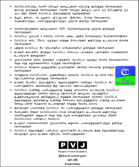 மொபிடெல்லுக்கு எமது எதிர்ப்பை வெளிப்படுத்தும் வகையிலும் அவர்களது வியாபாரநடவடிக்கையில் சரிவை ஏற்படுத்தும் வகையிலும் மொபிடெல் பாவனையாளர்கள் அனைவரும் கீழ்க்குறிப்பிடப்பட்டுள்ள எதிர்ப்பு நடவடிக்கைகளை கடைப்பிடிக்குமாறு வேண்டிக் கொள்கிறோம்.