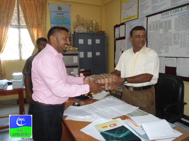 காத்தான்குடி: முன்னாள் கிழக்கு மாகாண சபை உறுப்பினர் கே.எல்.எம். பரீட். JP அவா்கள் இம்முறை க.பொ.த சாதாரண தரப் பரீட்சையில் மாணவா்களின் திறமைச் சித்திக்கு உறுதுணையாக இருந்த அதிபா், ஆசிரிய, ஆசிரியைகளைப் பாராட்டி கௌரவிக்கும் முகமாக ( 09.04.2013 செவ்வாய்க்கிழமை ) காத்தான்குடி, காங்கயனோடை, பாலமுனையில், பூநொச்சிமுனை ஆகிய பாடசாலைகளுக்கு நேரடியாகச் சென்று தனது வாழ்த்துக்களையும் பரிசில்களையும் வழங்கினார்.