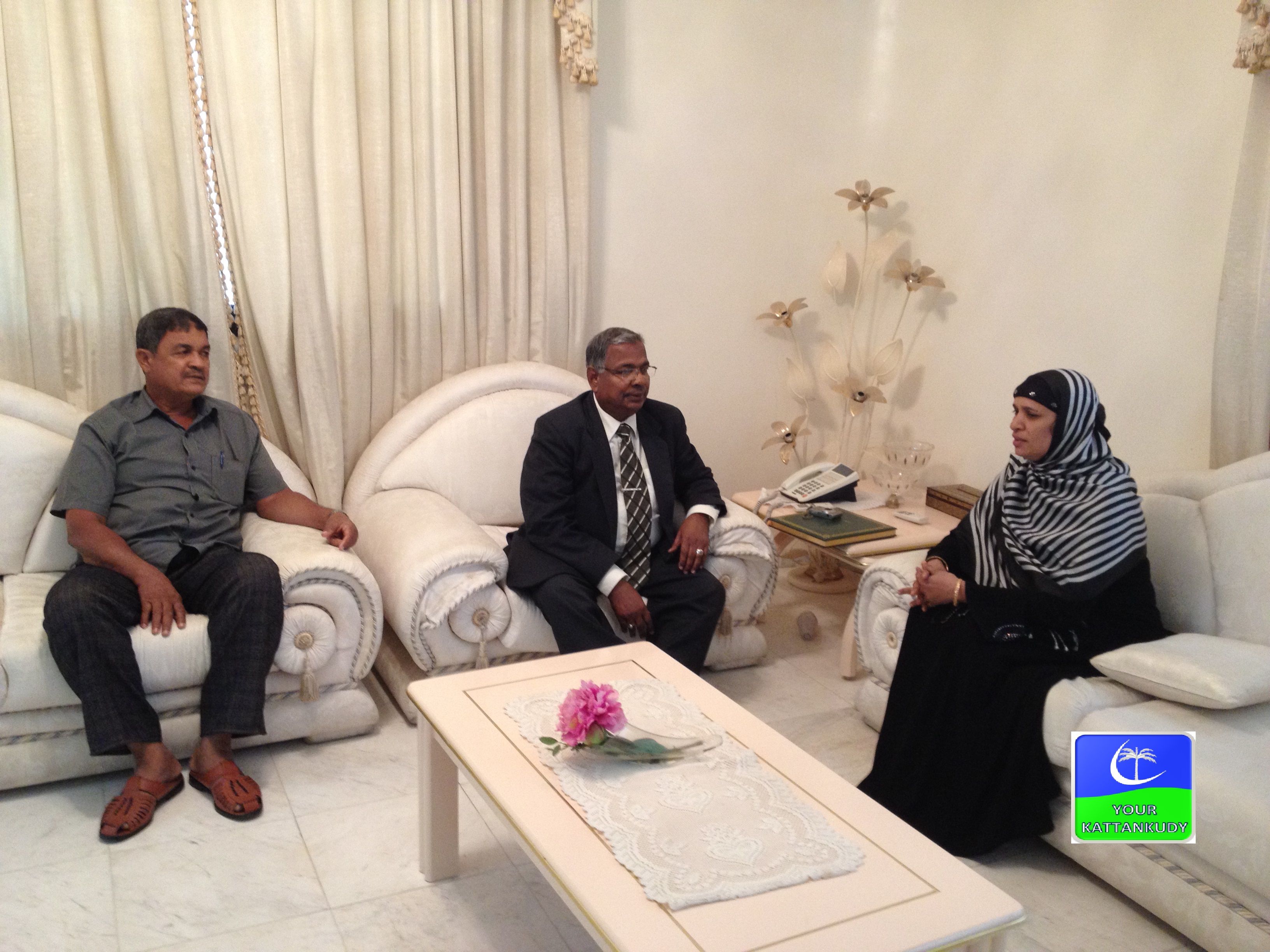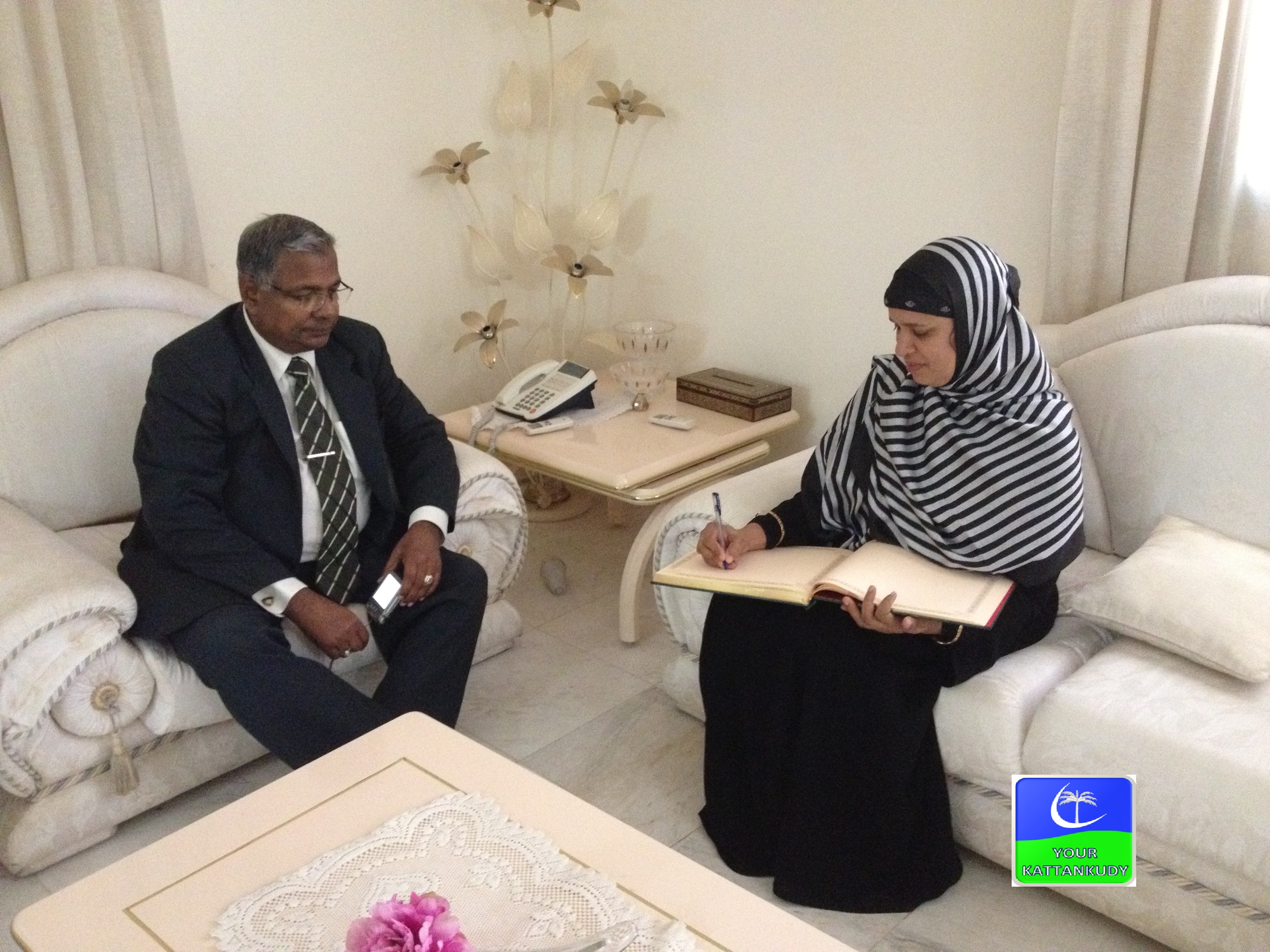 காத்தான்குடி: சஊதி அரேபியாவுக்கு சென்றுள்ள காத்தான்குடி நகர சபை உறுப்பினரும் பெண்களுக்கான வலுவூட்டலுக்கும் அபிவிருத்திக்குமான அமைப்பின் தலைவியுமான சல்மா அமீர் ஹம்சா (9.4.2013) செவ்வாய்க்கிழமை சஊதி அரேபியாவின் ஜித்தா நகரிலுள்ள இலங்கை தூதுவராலயத்தின் கொன்சலர் நாயகம் ஏ.எல். உதுமா லெவ்வையை சந்தித்தார்.