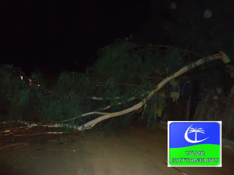 காத்தான்குடி: புதிய காத்தான்குடி கடற்கரை வீதியில் காத்தான்குடி ஆதார வைத்தியசாலைக்கு முன்பாக இன்றிரவு 08.15 மணியளவில் மரமொன்று முறிந்து விழுந்ததால் போக்குவரத்து தற்காலிகமாக தடைப்பட்டிருந்தது.