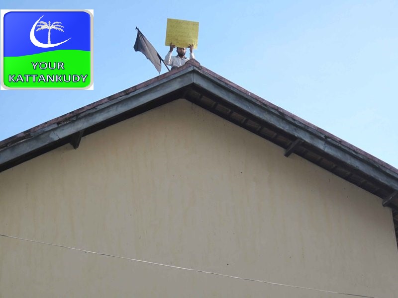 ஆர்ப்பாட்டத்தின் உச்ச கட்டமாக, மாணவர் ஒருவரின் தந்தையான ஹமீத் என்பவர் பாடசாலை கூரைமுகட்டில் ஏறி நின்று, உண்ணாவிரதம் இருந்து தமது எதிர்ப்பை வெளிப்படுத்தி வந்தார். ஆர்ப்பாட்டம் முடிவுற்றதையடுத்து கூரையில் இருந்து அவர் கீழிறங்கிய பொழுது தாகித்திருந்த அவருக்கு நீராகாரம் வழங்கப்பட்டது.