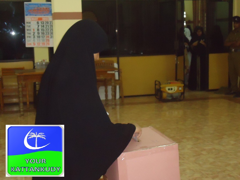 காத்தான்குடி: தேசிய இளைஞர் சேவைகள் மன்றத்தினால் நாடளாவிய ரீதியில் இன்று இடம்பெறுகின்ற ஸ்ரீலங்கா யூத் பாராளுமன்ற தேர்தலில் காத்தான்குடி பிரதேச செயலகத்திற்கான தேர்தல் தற்போது காத்தான்குடி பிரதேச செயலகத்தில் பொலிஸ் பாதுகாப்புடன் சுமுகமான முறையில் இடம்பெற்று வருவதாக அங்கிருக்கும் எமது பிராந்திய செய்தியாளர் குறிப்பிடுகிறார்.