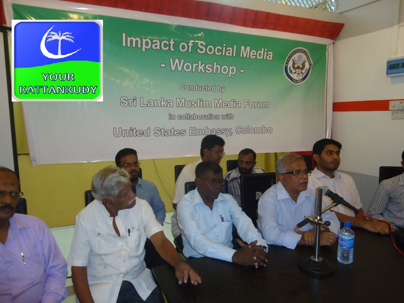 காத்தான்குடி: சிறிலங்கா முஸ்லிம் மீடியா போரத்தின் ஏற்பாட்டில் இலங்கையிலுள்ள ஐக்கிய அமெரிக்கா தூதுவராலயத்தின் அனுசரணையுடன் கிழக்கு மாகாணத்திலுள்ள சமூக ஊடங்களில் பணிபுரியும் ஊடகவியலாளர்களுக்கான ‘சமூக ஊடகங்களின் பாதிப்பு’ எனும் தலைப்பிலான இரண்டு நாள் செயலமர்வு இன்று (25.5.20113) காலை மட்டக்களப்பு காத்தான்குடி நியு கடாபி ஹோட்டல் ரெஸ்டுரண்டில் சிறிலங்கா முஸ்லிம் மீடியா போரத்தின் தலைவர் என்.எம்.அமீன் தலைமையில் ஆரம்பமானது.