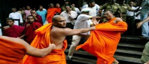 அப்போது அவ்விடத்துக்கு வந்த அருகிலுள்ள பௌத்த விகாரையின் மதகுரு, கிறிஸ்தவ ஆராதனைகளை நிறுத்துமாறு கண்டித்துள்ளார். இதனையடுத்து இருதரப்புக்கும் இடையில் வாக்குவாதங்கள் முற்றி, அடிதடி வரை நிலைமை மோசமடைந்துள்ளது. பௌத்த மதகுருவும், கிறிஸ்தவ போதகரும் ஒருவரையொருவர் தாக்கிக் கொண்டுள்ளனர்.