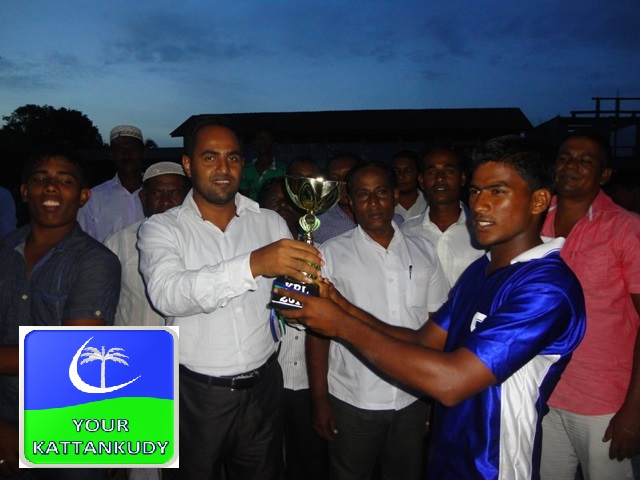 இறுதியில் வெற்றி பெற்ற அணிக்கு நகரபிதா கேடயத்தினையும் பணப்பரசினையும் வழங்கிவைத்தார். நிகழ்வில் கிண்ணியா நகரபிதா டொக்டர் எம்.எம். ஹில்மி, கால்தீன், பாயிஸ், ஜெசூர், மௌலவி ஜெமீல் ஆகியோர் கலந்து கொண்டனர்.