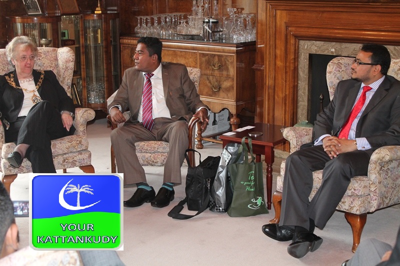 லண்டன்: பிரத்தியேக விஜயம் ஒன்றை மேற்கொண்டு கடந்த ஞாயிற்றுக்கிழமை ( 23.06.2013) இலண்டன் பயணமான கல்முனை மாநகர முதல்வர் கலாநிதி சிராஸ் மீராசாஹிப் ஸ்ரீ லங்கா முஸ்லிம் காங்கிரஸின் இலண்டன் கிளையின் தலைவர் எம்.எஸ்.ஹலீமின் ஏற்பாட்டில் நேற்று புதன்கிழமை இலண்டன் ரெட்பிரிட்ஜ் நகரத்தின் மேயர் பெலிசிட்டி பேங் மற்றும் பிரதி முதல்வர் ஆகியோரை சந்தித்து கலந்துரையாடினார்.