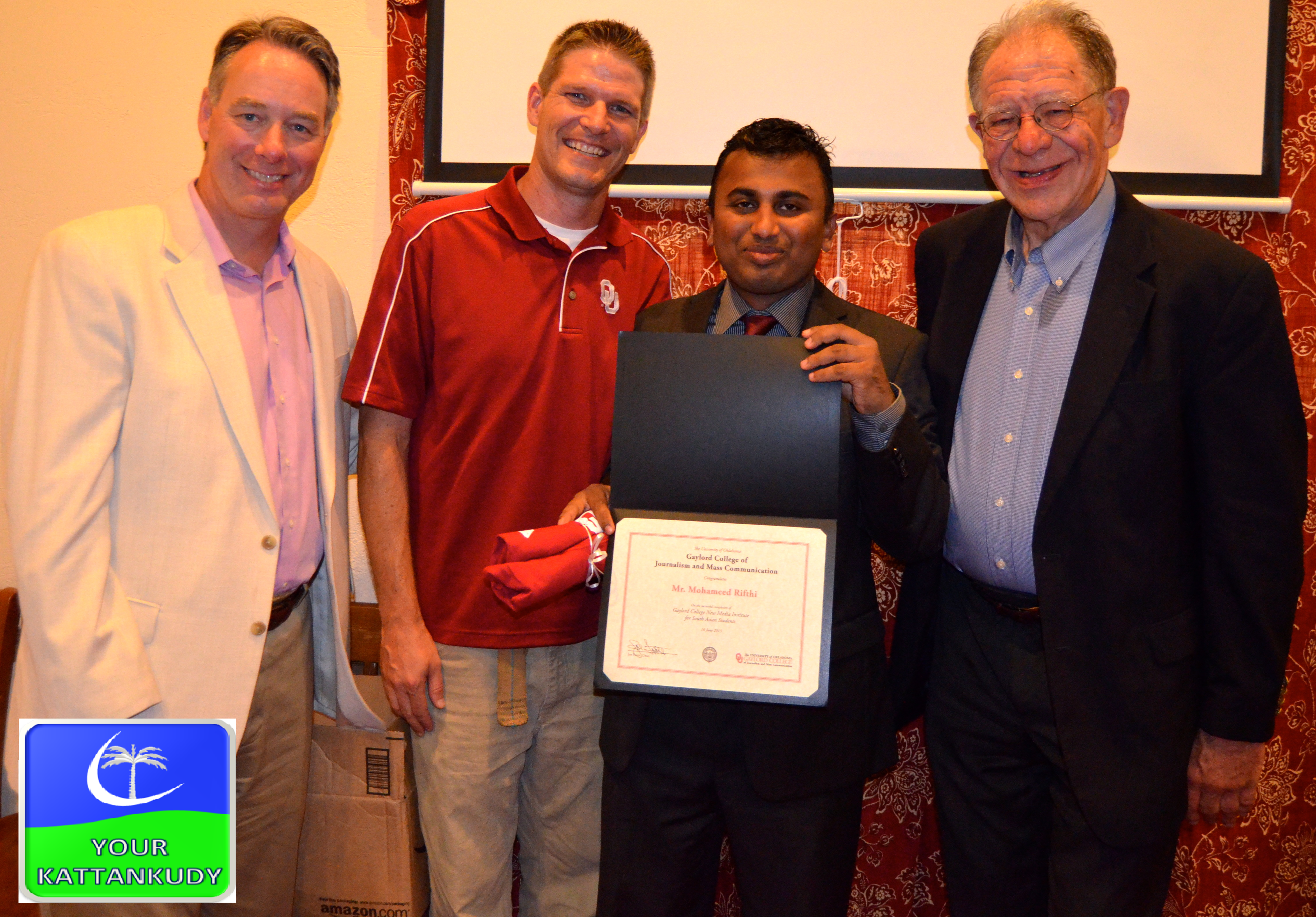 ஐந்து வார காலம் அமெரிக்காவில் தங்கியிருந்த ஊடகவியலாளர் றிப்தி அலி, ஒக்லோமா பல்கலைக்கழகத்தில் ‘நவீன ஊடகம்’ தொடர்பில் மூன்று வாரங்கள் இடம்பெற்ற செயலமர்வில் கலந்துகொண்டார். பின்னர் கலிபோர்னியா மற்றும் வொஷிங்டன் ஆகிய மாநிலங்களுக்கும் இவர் விஜயம் மேற்கொண்டிருந்தார்.
