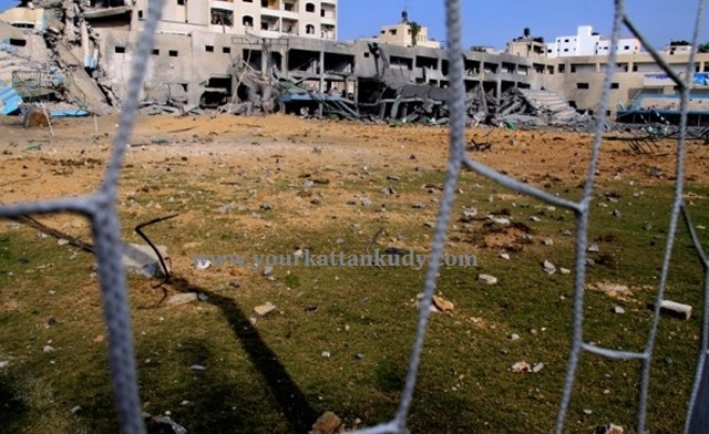 இஸ்ரேலிய ஏவுகணைத் தாக்குதலில் அழிக்கப்பட்ட பலஸ்தீன விளையாட்டுக் கழகத்தின் மைதானம்