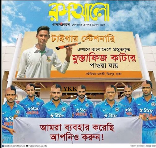 முஸ்தபிசுர் ரஹ்மான், கட்டர் என்று கிரிக்கெட் பாஷையில் அழைக்கப்படும் ‘ஸ்லோ’ பந்துகளை வீசி இந்திய பெட்ஸ்மேன்களை நிலைகுலையச் செய்தார். 3 போட்டிகளில் 13 விக்கெட்டுகளை சாய்த்தார். இதை குறிப்பிட்டுதான், அவர் கட்டர் (முடி வெட்டும்) என்பதை போலவும், இந்திய வீரர்கள் தலையை சிரைத்துவிட்டது போலவும், வங்கதேச பத்திரிகை தனது நக்கலைக் காட்டியுள்ளது.