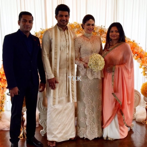 கொழும்பு: மேல் மாகாண சபை உறுப்பினர் ஹிருணிகா பிரேமசந்திர இன்று திருமண பந்தத்தில் இணைந்துள்ளார். கலைஞர் மற்றும் நடிகர் ஹிரான் யட்டோவிட்ட என்பவரே ஹிருணிகாவை கைப்பிடித்துள்ளார். திருமண நிகழ்வில் பங்கேற்ற ஜனாதிபதி மைத்திரிபால சிறிசேன சாட்சியாளராக கையொப்பமிட்டுள்ளார். திருமணத்திற்கு 20 பேருக்கு உட்படவர்களுக்கு மாத்திரமே அழைப்பு விடுக்கப்பட்டுள்ளதாக தெரிவிக்கப்படுகின்றது.
