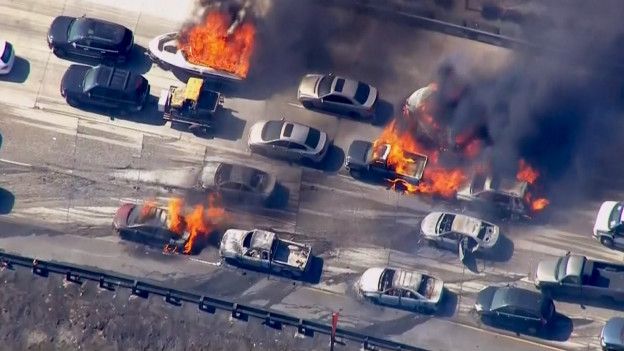 கலிஃபோர்னியா: கலிஃபோர்னியாவின் தென் பகுதியில் உள்ள இன்டர்ஸ்டேட் – 15 என்ற நெடுஞ்சாலையை ஒட்டியுள்ள வனப்பகுதியில் தீப்பிடித்து, அந்தத் தீ நெடுஞ்சாலையிலும் பரவியில் பல வாகனங்கள் தீயில் கருகின. இந்தத் தீயின் காரணமாக, கயோன் கணவாயில் உள்ள நெடுஞ்சாலையில் சென்று கொண்டிருந்த 20க்கும் மேற்பட்ட வாகனங்கள் சேதமடைந்தன.
