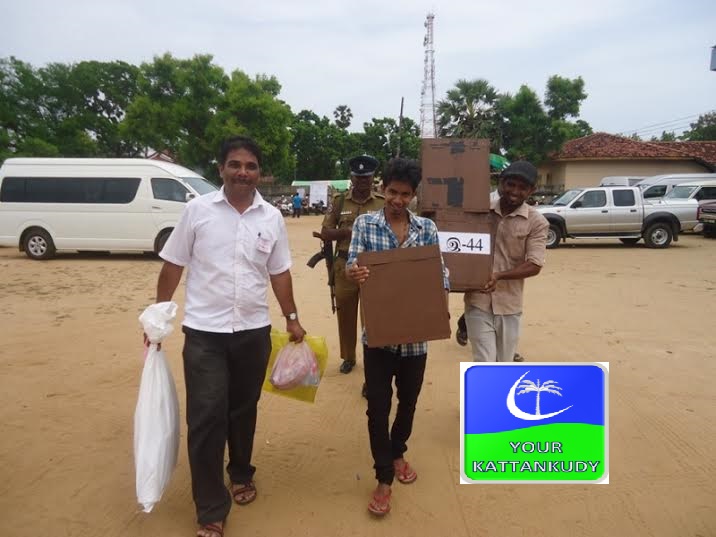 மட்டக்களப்பு: மட்டக்களப்பு மாவட்டத்தில் 2015 பாராளுமன்ற பொதுத் தேர்தலுக்கான ஏற்பாடுகள் பூர்த்தியடைந்த நிலையில் மட்டக்களப்பு இந்துக் கல்லூரியில் இயங்கும் மாவட்ட தேர்தல் செயலகத்திலிந்து வாக்களிப்பு நிலையங்களுக்கு வாக்குப் பெட்டிகள் பொலிசாரின் பலத்த பாதுகாப்புக்கு மத்தியில் இன்று 16 ஞாயிற்றுக்கிழமை எடுத்துச் செல்லப்பட்டது.