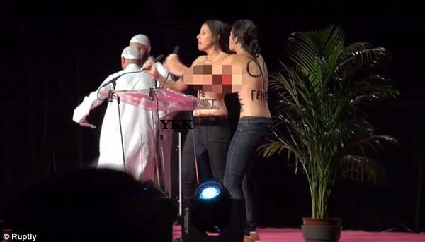 பரிஸ்: பிரான்ஸ் நாட்டின் பரிஸ் நகரில் நடைபெற்ற இஸ்லாமிய மாநாட்டில் திடீரென நுழைந்த அரை நிர்வாணப் பெண்கள் இருவர் மாநாட்டில் குழப்பம் விளைவித்த சம்பவமொன்று பதிவாகியுள்ளது. குறித்த பெண்கள் தமது உடலின் முன் பகுதியிலும் பின் பகுதியிலும் ‘யாரும் என்னை கட்டாயப்படுத்த முடியாது’ என்ற வாசகத்தை எழுதியிருந்ததாகத் தெரிவிக்கப்படுகிறது.