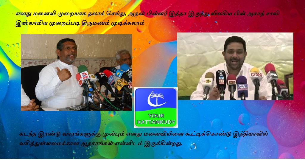 எனது மனைவி முறையாக தலாக் செய்து, அதன் பின்னர் இத்தா இருந்து விலகிய பின் அசாத் சாலி இஸ்லாமிய முறைப்படி திருமணம் முடிக்கலாம் என்றும் அவர் தெரிவித்தார்.