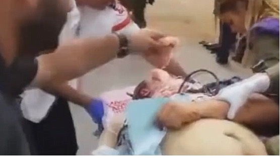சமூகதளங்களில் பதிவாகி இருக்கும் வீடியோவில், இவ்வாறு சுடப்பட்ட பலஸ்தீனர் மருத்துவ உதவியாளர்களால் அம்புலன்ஸ் வண்டிக்கு ஏற்றும் போது இறைச்சு துண்டுகளுடன் வரும் இஸ்ரேல் பொலிஸார் ஒருவர், மரணித்துக்கு கொண்டிருக்கும் அந்த பலஸ்தீனரின் முகம் மற்றும் உடலில் அதனை போடுவதை காணலாம்.