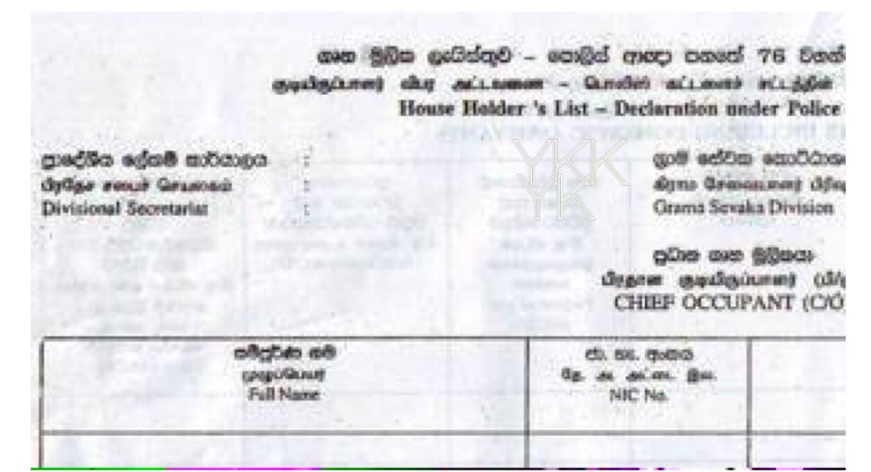 வீடுகளில் நிரந்தரமாக மற்றும் தற்காலிகமாக தங்கியிருப்போர் என வகைப்படுத்தப்பட்டு விபரங்கள் உறவு முறையுடன் அதற்கான படிவத்தில் போலிஸாரால் கோரப்பட்டுள்ளன.