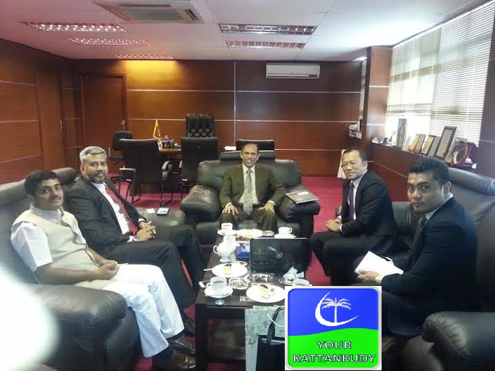 கொழும்பு: எதிர்வரும் செப்டம்பர் மாதம் 5,6,7 ஆம் திகதிகளில் மலேசியாவில் நடைபெறவுள்ள சர்வதேச பொருளாதார, முதலீட்டு மற்றும் புனரமைப்பு மாநாட்டில் இலங்கை சார்பில் இராஜாங்க அமைச்சர் எம்.எல்.ஏ.எம்.ஹிஸ்புல்லாஹ் கலந்து கொள்ளவுள்ளார். பேராக் மாகாண முதலமைச்சரின் நிறைவேற்று அதிகாரி டாக்டர். மஸலன் கமிஷ் மற்றும் மலேசியா சர்வதேச விவகாரங்களுக்கு பொறுப்பான நிறைவேற்று அதிகாரி சாஹூல் ஹமீட் தாவூத் உள்ளிட்ட குழுவினர் இன்று (10.05.2016) காலை இராஜாங்க அமைச்சர் ஹிஸ்புல்லாஹ்வை அமைச்சின் காரியாலயத்தில் சந்தித்து மலேசிய அரசு சார்பில் மாநாட்டுக்கான விசேட அழைப்பிதழை வழங்கினர்.